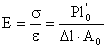 试件受到轴向拉力P的作用时,在比例极限内,应力和应变的关系符合虎克定律,弹性模量是应力和应变的比值,即 :