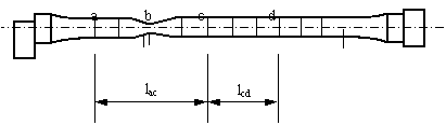 为10㎜。试件等截面的中段用于测量拉伸变形,其长度
