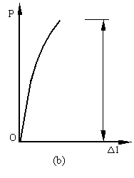 尖和活动顶尖便可把引伸仪安装于试件上。试件变形时,上标距叉基本不动,但试件变形带动顶尖螺钉位移,从而使下标距叉绕球铰中心轻微转动,这样,下标距叉形成一个以球铰为支点的杠杆。按照图3-7(a)所示尺寸,千分表触头的位移是活动顶尖位移(即试件变形)的两倍。换句话说,在千分表的量程内,其指针转动ΔCi格,表示触头的位移为