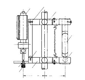 1.根据试件的尺寸调整定位块和顶尖,使小轴的尾部向上,限制上、下标距叉相对错动,把引伸仪套在试件上,使定位块与试件紧靠,施紧活动顶尖,使顶尖嵌入试件约为0.05~0.1㎜。