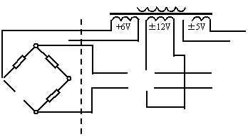 NAI-Ⅲ型数字测力仪由电源、放大器和数字显示部分组成。电源采用有多组次级线圈的变压器,经过硅桥整流,电容滤波后,输给三段集成稳压块,由稳压块分别输出+6V、±5V、±12V的直流电压供给传感器应变片电桥、放大器和数字显示表头,如图3-12所示。为适应不同量程的传感器,该仪器设置了增益调节电位器和传感器零点调节电位器。